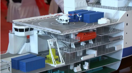 該船于2023年10月18日開(kāi)工建造,船舶總長(zhǎng)110.8米,型寬20.0米,排水量約7000噸,設(shè)計(jì)航速15節(jié),續(xù)航力10000海里,定員80人,具備無(wú)限航區(qū)全球航行能力。