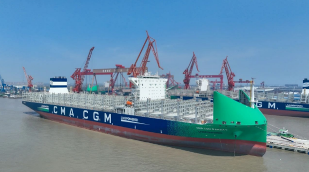 4月9日,中國(guó)船舶集團(tuán)旗下七〇八所設(shè)計(jì)、滬東中華聯(lián)合中船貿(mào)易建造的新款清潔能源“海上綠巨人”13000TEU液化天然氣(LNG)雙燃料動(dòng)力大型集裝箱船“CMA?CGM PARATY”號(hào)命名交付。