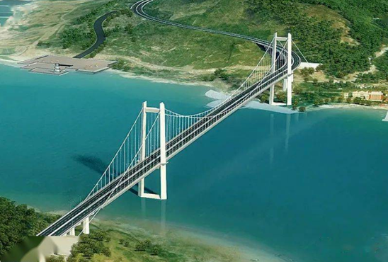 乳山口跨海大橋位于乳山灣口最窄的溝槽段,是山東省最大的地錨式懸索橋。該橋主跨長(zhǎng)度為666米,全長(zhǎng)4.01公里, 是山東省環(huán)海公路的重要控制性工程。作為環(huán)海公路威海與煙臺(tái)境內(nèi)的最后一項(xiàng)公路工程,乳山口跨海大橋通車后將打通煙臺(tái)市、威海市境內(nèi)G228國(guó)道,完成千里環(huán)海公路建設(shè),發(fā)揮環(huán)海公路的整體效益和規(guī)模效益,對(duì)促進(jìn)威海市沿海、內(nèi)陸鄉(xiāng)鎮(zhèn)間經(jīng)濟(jì)綜合協(xié)調(diào)發(fā)展,提升沿海港口綜合競(jìng)爭(zhēng)力有重要意義。