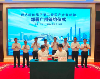 7月23日,中國船舶集團有限公司旗下中船郵輪科技管理有限公司所屬愛達郵輪有限公司與廣州南沙國際郵輪母港運營管理有限公司在廣州簽署合作協(xié)議,共同宣布第二艘國產大型郵輪將主要依托廣州母港運營,全面布局華南市場,進一步推動廣州郵輪全產業(yè)鏈生態(tài)體系建設,探索打造郵輪經濟與文商旅融合發(fā)展的創(chuàng)新樣板。中國船舶集團黨組成員、副總經理盛紀綱出席簽約儀式。