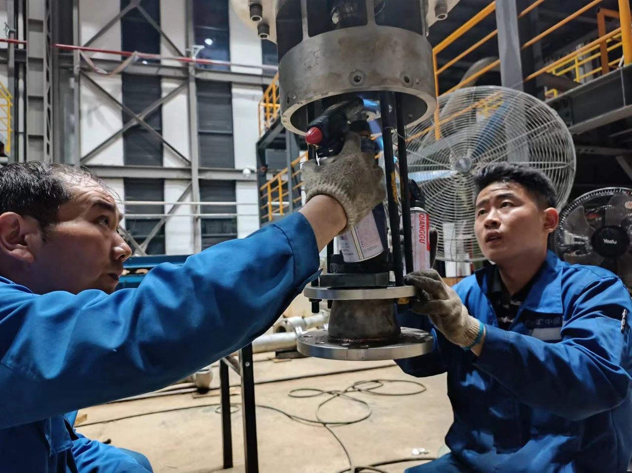 八院——高溫高壓的設備罩內,技術人員進行產品調測。