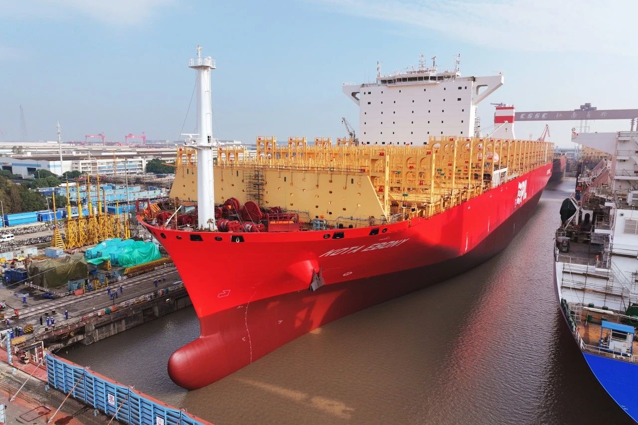 同步起浮的2艘半船是為新加坡太平船務(wù)(PIL)建造的14000TEU LNG雙燃料集裝箱船系列船第四艘的艏、艉半船。為了更好地進(jìn)行船舶浮態(tài)對中,減少變形量,建造團(tuán)隊(duì)開創(chuàng)了新的起浮方案,為后續(xù)集裝箱船樹立了半船起浮的新模式。
