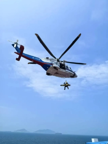 4月30日12時許,在中船集團旗下廣船國際G1172船海試期間,一名參試員工突發(fā)急性消化道出血,出血量達400毫升,面色蒼白、血壓持續(xù)走低、心率持續(xù)攀升、意識逐漸模糊,并出現(xiàn)休克前兆,若無法在黃金救治期內(nèi)送醫(yī)救治,隨時可能危及生命。海上常規(guī)救援方案需要調(diào)用拖輪或快艇轉(zhuǎn)運陸上醫(yī)院,耗時長且海上顛簸可能進一步加劇出血風(fēng)險。時間刻不容緩,常規(guī)救援已經(jīng)來不及了。