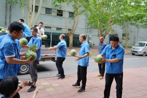 “這西瓜真新鮮!”“今年的西瓜肯定甜!”一個(gè)個(gè)滾圓的西瓜遞到職工們汗?jié)竦氖种?,大家邊卸西瓜邊聊天,現(xiàn)場(chǎng)傳來(lái)陣陣歡笑。此前,中船河柴已為一線(xiàn)職工發(fā)放綠豆、冰糖等防暑降溫用品,在生產(chǎn)現(xiàn)場(chǎng)安排專(zhuān)人熬煮綠豆湯,及時(shí)有效服務(wù)職工。接下來(lái),中船河柴將結(jié)合天氣情況,動(dòng)態(tài)調(diào)整“送清涼”計(jì)劃,分批次發(fā)放防暑降溫物資,為夏季安全生產(chǎn)提供堅(jiān)強(qiáng)保障。