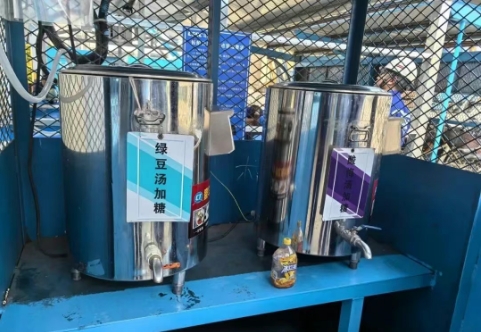 七月以來,持續(xù)高溫天氣給一線員工帶來嚴峻考驗。北海造船充分利用現(xiàn)有空間,共搭建45處現(xiàn)場員工休息點,配備234套餐整體式桌椅和246個長條椅,改善現(xiàn)場休息環(huán)境;為在高溫下堅守崗位的142個一線班組職工送去防暑降溫禮包,為一線員工配備飲水點,供應綠豆湯、酸梅湯、大桶水,發(fā)放防暑降溫藥品;根據(jù)天氣情況動態(tài)調(diào)整夏季室外露天作業(yè)時間,采取錯峰避讓高溫時段、換班輪休等方式,在無立體交叉作業(yè)區(qū)域,設(shè)置遮陽網(wǎng)避免陽光直曬,在船艙/密閉空間安裝風機、除濕機,作業(yè)前30分鐘進行通風、除濕,為艙室作業(yè)人員提供防護;組織高溫作業(yè)職工進行身體健康檢查,開展防暑降溫培訓和應急演練,提升職工自我保護意識和應急處置能力。