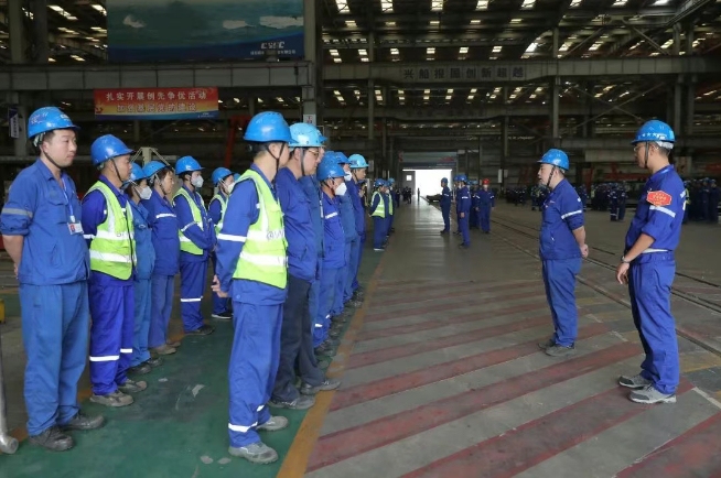 廣船國際按照“五步法”認真組織開展班前會,組織開展班前會安全交底比賽,建立10個“優(yōu)秀班前會”班組,每周組織班前會觀摩學習,將“優(yōu)秀班前會”進行推廣。