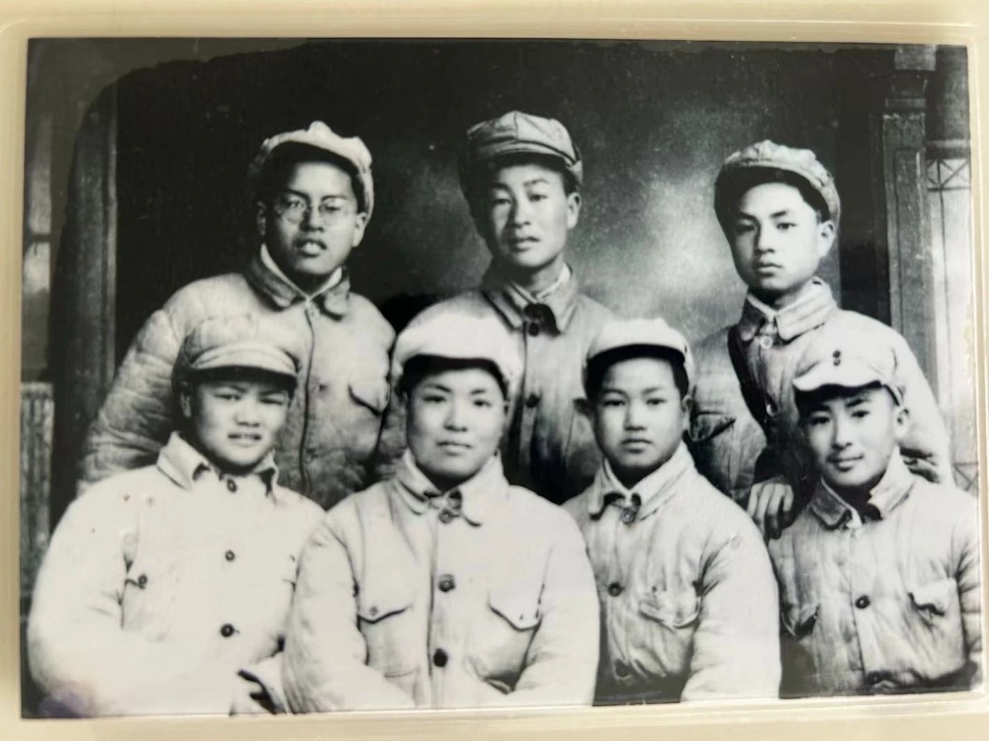采訪中,劉暉小心地從文件袋中取出一張張老照片,向記者講述背后的故事。其中一張是1949年3月,劉暉與戰(zhàn)友們在部隊(duì)休整間隙拍下的合影。她一直珍藏這張照片,畫面中,定格了他們青春年少、英姿颯爽、滿懷革命理想的模樣。