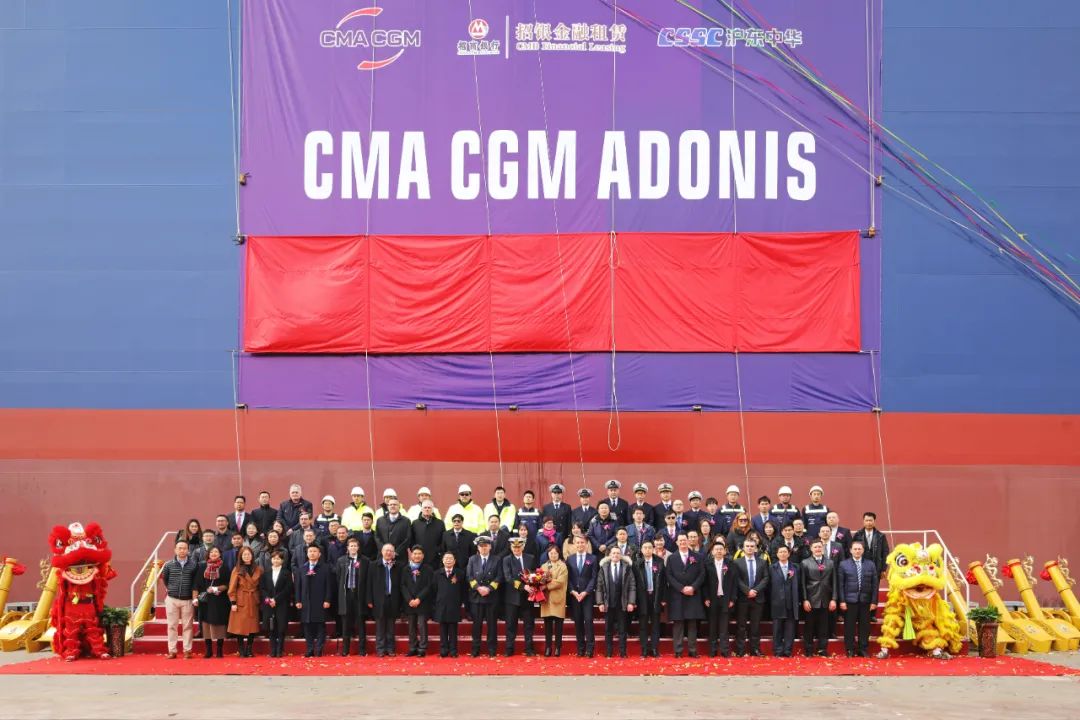 2月28日,中國船舶集團(tuán)有限公司旗下滬東中華造船(集團(tuán))有限公司聯(lián)合中國船舶工業(yè)貿(mào)易有限公司為法國達(dá)飛海運(yùn)集團(tuán)建造的15000TEU超大型集裝箱船“達(dá)飛·阿多尼斯”號(hào)在上海命名。這不僅是為達(dá)飛集團(tuán)量身定制的5艘常規(guī)動(dòng)力系列箱船中的最后一艘,實(shí)現(xiàn)了平均每月命名交付一艘的既定目標(biāo),也是繼由該公司建造的5艘全球首創(chuàng)最大、最先進(jìn)23000TEU雙燃料動(dòng)力集裝箱船之后,又一款被市場追捧的超大型集裝箱船項(xiàng)目完美收官,進(jìn)一步鞏固了其全球超大型箱船建造基地的地位。
