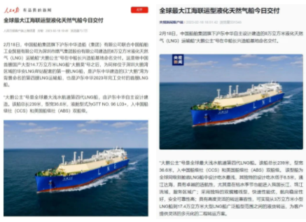 2月18日,中國船舶集團(tuán)旗下滬東中華聯(lián)合中船貿(mào)易建造的8萬立方米液化天然氣(LNG)運(yùn)輸船“大鵬公主”號在中船長興造船基地命名交付。這是繼中國首艘國產(chǎn)大型14.7萬立方米LNG船“大鵬昊”號之后,為同樣位于深圳大鵬灣區(qū)域的華安LNG岸站配套的第一艘LNG船,是滬東中華建造的以“大鵬”灣為背景命名的第四艘LNG運(yùn)輸船,也是滬東中華2023年完工交付的首艘LNG船,全面開啟LNG船產(chǎn)能倍增戰(zhàn)略實(shí)施新征程。