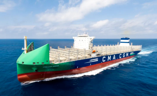 滬東中華為法國達(dá)飛海運建造的13000TEU雙燃料動力集裝箱船“CMA CGM BAHIA”號