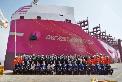 3月21日,由中國船舶集團(tuán)外高橋造船聯(lián)合中船貿(mào)易為加拿大Seaspan Corporation(以下簡稱SEASPAN)建造的7000TEU集裝箱船“舉賢”號(ONE RECOMMENDATION)順利完成命名。