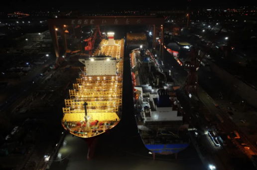 本次出塢的整船是江南造船為新加坡太平船務(wù)建造的14000TEU LNG雙燃料集裝箱船系列船第二艘;起浮的一艘整船是17.5萬立方米大型LNG運輸船系列船第二艘,兩艘半船分別是為新加坡太平船務(wù)建造的14000TEU LNG雙燃料集裝箱船系列船第三艘的艏、艉半船和第四艘的燃料艙環(huán)段。