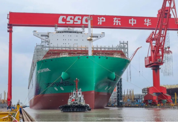 11月20日,由中國船舶集團(tuán)旗下滬東中華建造的全球最大24000TEU級液化天然氣(LNG)雙燃料動力超大型集裝箱船首制船,提前10天順利出塢。