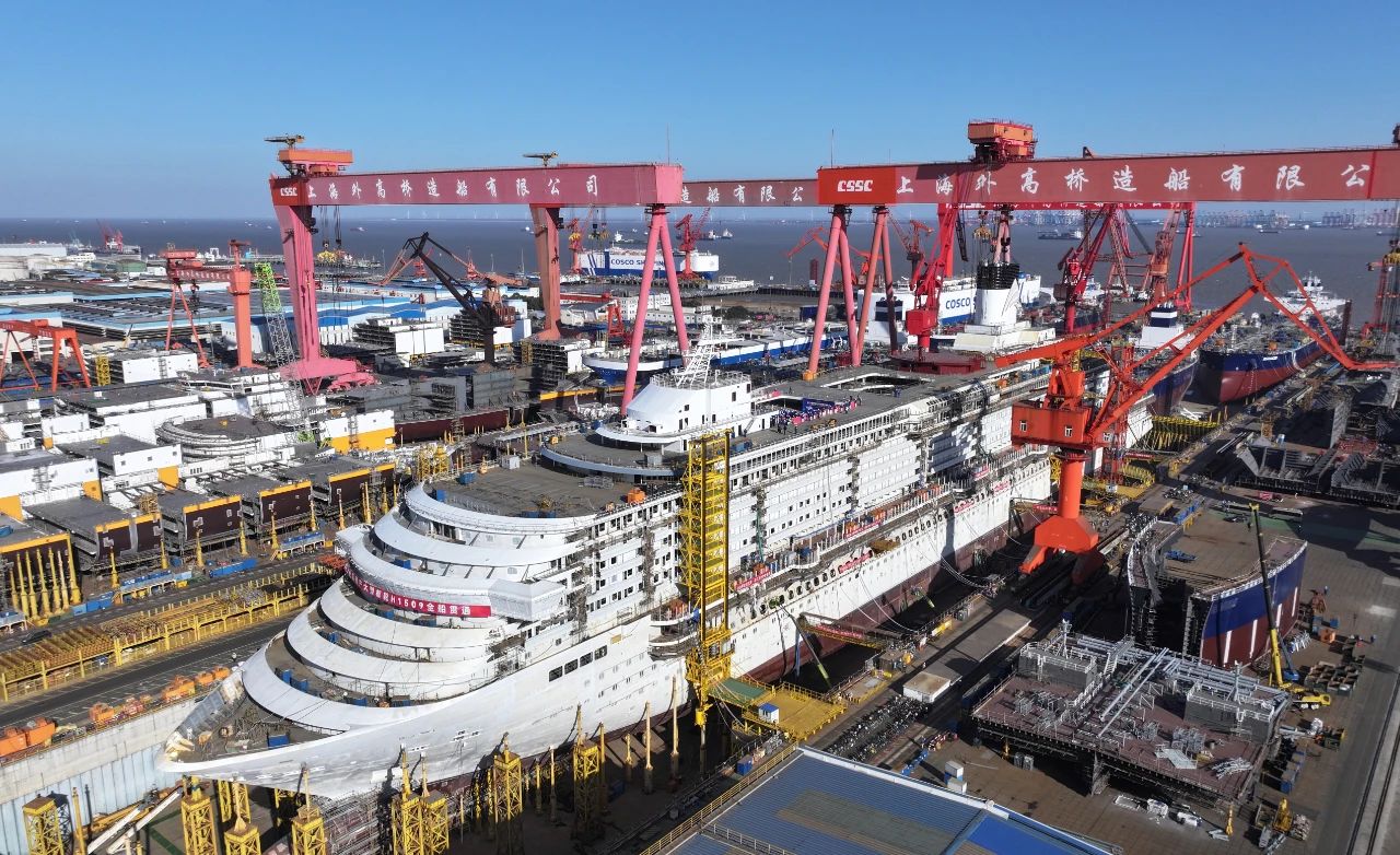 1月15日,第二艘國產大型郵輪“愛達·花城號”在中國船舶集團旗下外高橋造船實現(xiàn)全船貫通的里程碑節(jié)點,全面轉入全船內裝工程、設備、系統(tǒng)調試下半場。