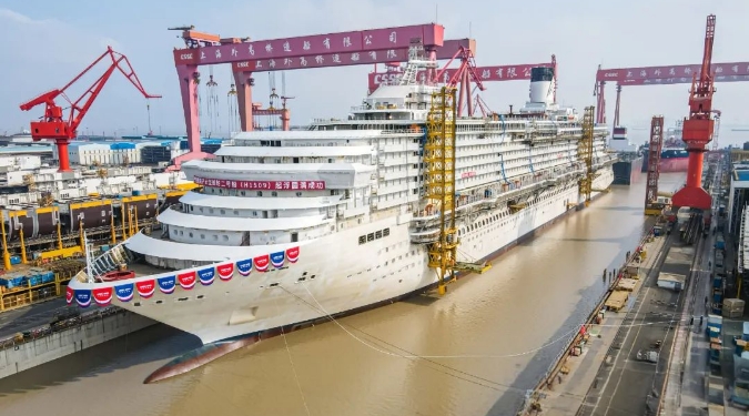 “愛達·花城號”由中船集團旗下外高橋造船于2022年8月開工建造,去年4月入塢搭載,今年1月實現(xiàn)全船貫通。“愛達·花城號”長341米、寬37.2米、約14.19萬總噸,相比首艘國產(chǎn)大型郵輪“愛達·魔都號”體量更大、建造物量更多,對設計建造管理能力提出了更高要求。目前,“愛達·花城號”整體建造進度已超過70%,比“愛達·魔都號”起浮時總進度提前12%,結(jié)構(gòu)總裝周期縮短至9個月,標志著我國大型郵輪建造技術邁上了新臺階。