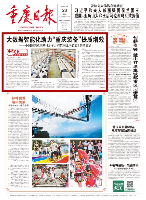 近日,重慶日?qǐng)?bào)頭版頭條以《大數(shù)據(jù)智能化助力“重慶裝備”提質(zhì)增效——中國(guó)海裝重慶基地1-5月產(chǎn)值同比增長(zhǎng)超3倍的背后》,為題對(duì)中國(guó)船舶集團(tuán)旗下中國(guó)海裝進(jìn)行了報(bào)道,文章對(duì)后疫情時(shí)代,中國(guó)海裝如何履行央企責(zé)任,做好“六穩(wěn)”工作,落實(shí)“六?!比蝿?wù),助力重慶裝備制造業(yè)穩(wěn)步復(fù)蘇,奮力實(shí)現(xiàn)高質(zhì)量發(fā)展的舉措與成效進(jìn)行了深入分析。