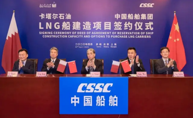 4月22日,中國(guó)船舶集團(tuán)與卡塔爾石油公司簽署“中國(guó)船舶—卡塔爾石油液化天然氣(LNG)船建造項(xiàng)目”協(xié)議,所涉訂單總金額超過200億元人民幣。