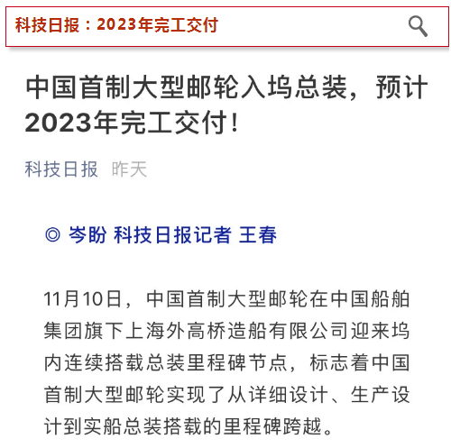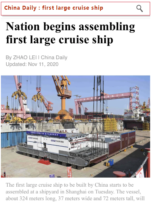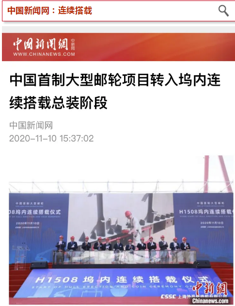 昨天(11月10日),中國(guó)船舶集團(tuán)旗下外高橋造船建造的中國(guó)首制大型郵輪,迎來(lái)里程碑節(jié)點(diǎn)轉(zhuǎn)入塢內(nèi)連續(xù)搭載總裝新階段的消息,在業(yè)界引起廣泛關(guān)注,也再次成功吸引新華社、央視新聞等各大央媒的目光!