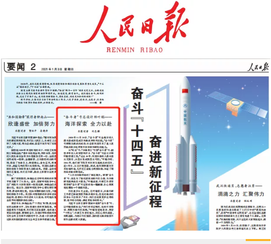 1月3日,人民日報在要聞二版【奮斗“十四五” 奮進新征程】專題報道中,以“海洋探索 全力以赴”為題刊發(fā)了對中國船舶集團七〇二所副所長“奮斗者”號總設計師葉聰?shù)膶TL。