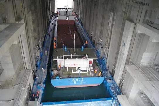 而在上述水電站過船設(shè)施工程建設(shè)中,也出現(xiàn)了中國船舶集團旗下院所、船廠、配套企業(yè)等相關(guān)單位的身影。烏江構(gòu)皮灘水電站通航工程被視為貴州融入長江、通江達海的關(guān)鍵工程。該工程線路總長2306米,概算總投資29.51億元,設(shè)計通航標(biāo)準(zhǔn)為四級航道,最高通航水頭達199米,是世界上通航水頭最高、水位變幅最大的通航工程。