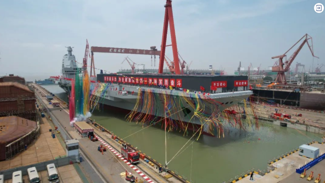 2022年6月17日,我國第三艘航空母艦下水命名儀式在中國船舶集團(tuán)有限公司江南造船廠舉行。經(jīng)中央軍委批準(zhǔn),我國第三艘航空母艦命名為“中國人民解放軍海軍福建艦”,舷號(hào)為“18”。福建艦是我國完全自主設(shè)計(jì)建造的首艘彈射型航空母艦,采用平直通長飛行甲板,配置電磁彈射和阻攔裝置,滿載排水量8萬余噸。該艦下水后,將按計(jì)劃開展系泊試驗(yàn)和航行試驗(yàn)。福建艦順利下水標(biāo)志著我國海軍裝備現(xiàn)代化建設(shè)取得了又一重大的歷史性突破,對(duì)于進(jìn)一步提升我國海軍維護(hù)國家海洋權(quán)益的能力具有重要意義。