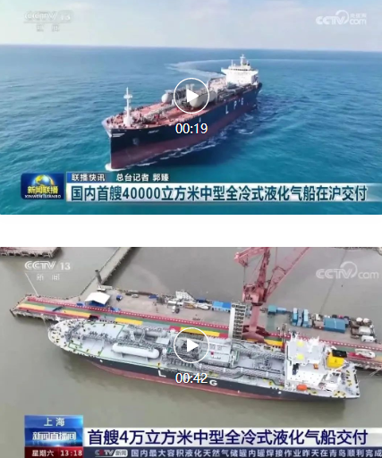 3月31日,中國船舶集團旗下江南造船聯(lián)合中船貿(mào)易為日本KUMIAI公司建造的40000立方米中型全冷式液化氣船(MGC)“MIRAI”號順利交付,中央電視臺《新聞聯(lián)播》 《新聞直播間》對此進(jìn)行了報道。