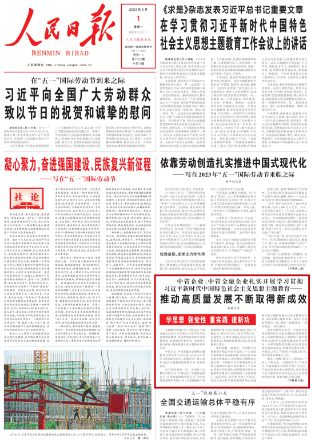 人民日報2023年5月1日頭版刊發(fā)《中管企業(yè)、中管金融企業(yè)扎實開展學(xué)習(xí)貫徹習(xí)近平新時代中國特色社會主義思想主題教育——推動高質(zhì)量發(fā)展不斷取得新成效(學(xué)思想 強黨性 重實踐 建新功)》。文中提到: