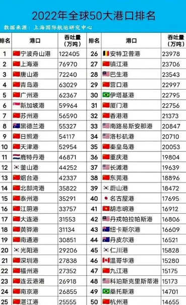 從規(guī)模上講,在世界排名前十的港口當(dāng)中,中國(guó)占有八席。