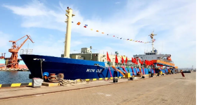 2020年,大連造船將散貨船改裝而成的“民德”號交付。這是具有完全自主知識產(chǎn)權(quán)的舷側(cè)開孔式養(yǎng)殖工船。交船的同時,簽約了10+8艘大型養(yǎng)殖工船項目。