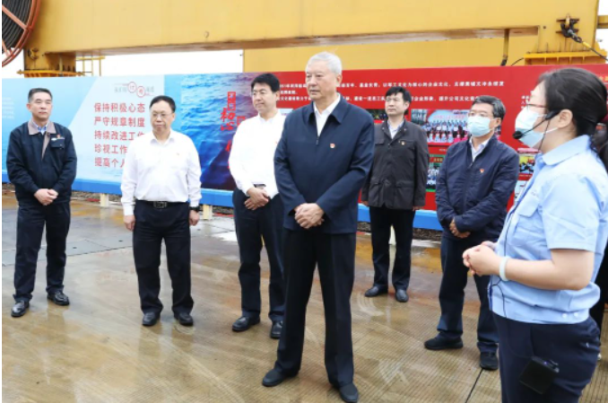調(diào)研期間,中央主題教育第42指導(dǎo)組組長(zhǎng)王壽君、副組長(zhǎng)房德權(quán),成員程建宏、項(xiàng)紫君、仇國(guó)歡一行深入黃埔文沖科研生產(chǎn)現(xiàn)場(chǎng),登上在建重點(diǎn)船舶,詳細(xì)了解重點(diǎn)項(xiàng)目產(chǎn)品性能、技術(shù)優(yōu)勢(shì),聽取了關(guān)于設(shè)計(jì)研發(fā)、創(chuàng)新改進(jìn)、生產(chǎn)建造過程的介紹。指導(dǎo)組一行還走進(jìn)黃埔文沖廠史館,了解黃埔文沖170多年的發(fā)展歷程。