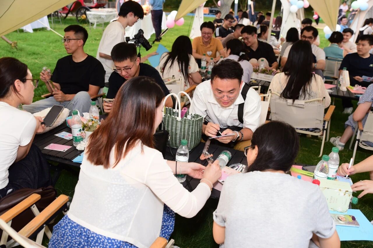 青年男女們帶著真誠與熱情,在交流中發(fā)現共鳴,在互動中收獲友誼?!耙慌瀮A心”“團隊競技”等破冰游戲迅速點燃現場氣氛,青年們放下羞澀,展現青春活力,現場笑聲與掌聲不斷;“共話知音”“若如初見”讓青年男女們能夠從容交談,主動分享個人愛好與職業(yè)故事,發(fā)現志趣相投的伙伴,創(chuàng)造難忘的互動時刻;“燒烤情緣”將活動推向又一個高潮,在炊煙裊裊與美食香氣中,情誼悄然生長;在“攜手深藍”環(huán)節(jié),青年男女填寫心動卡,坦誠心意,最終10對嘉賓成功牽手,為秋日序章畫上圓滿句號。