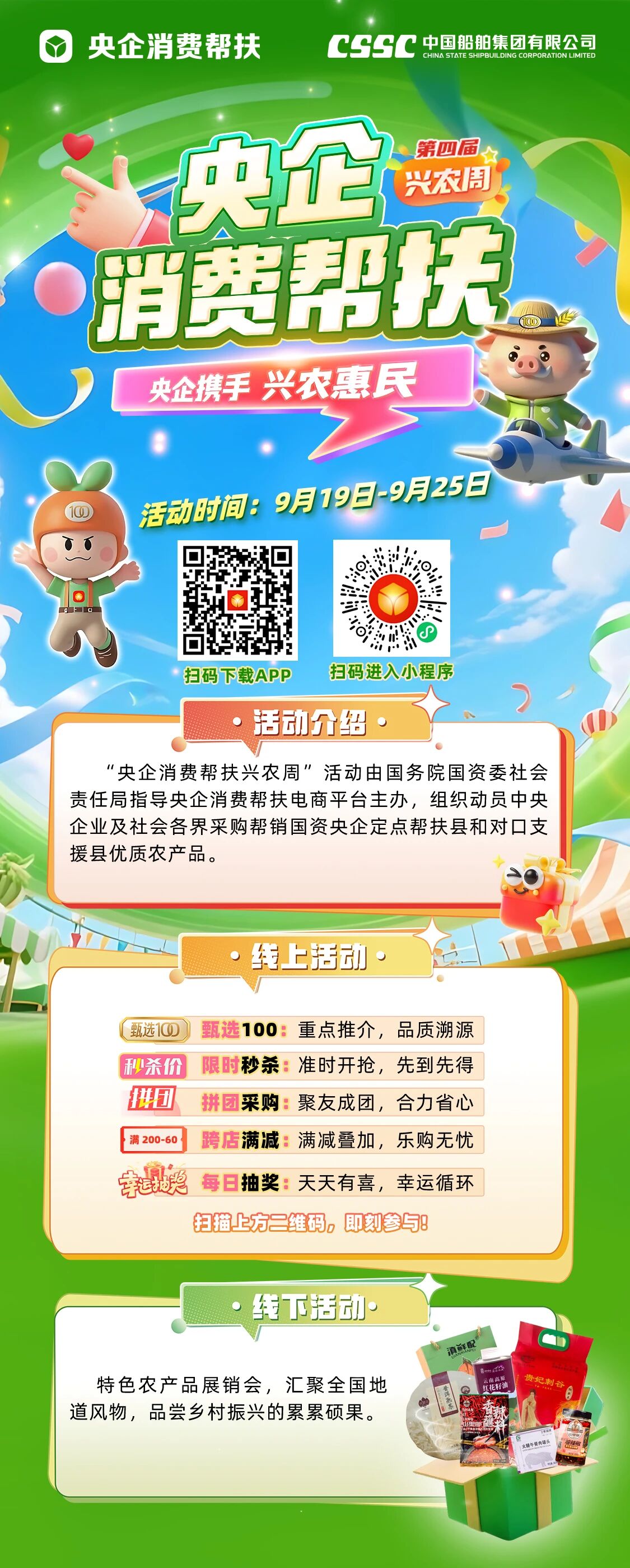 9月19日,以“央企攜手,興農(nóng)惠民”為主題的第四屆“央企消費(fèi)幫扶興農(nóng)周”活動在北京正式啟動。中國船舶集團(tuán)有限公司在同期舉行的特色農(nóng)產(chǎn)品展銷會上精心布置了特色展區(qū),現(xiàn)場展銷來自其定點幫扶的鶴慶、勐臘、丘北三縣的110款優(yōu)質(zhì)特色農(nóng)產(chǎn)品。
