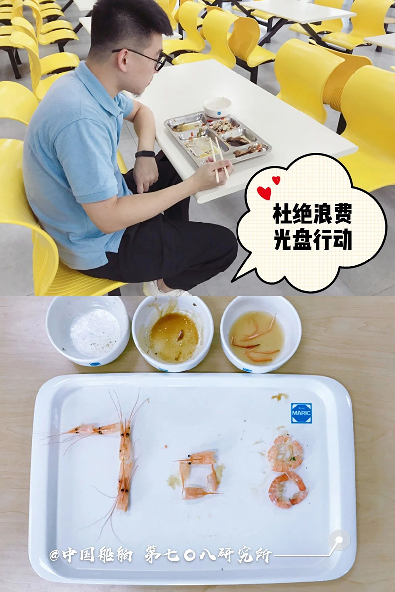 “誰知盤中餐,粒粒皆辛苦。” 自古以來 敬天惜糧、勤儉節(jié)約就是 中華民族傳統(tǒng)美德 中國(guó)船舶集團(tuán)多家成員單位 用實(shí)際行動(dòng) 杜絕“舌尖上的浪費(fèi)”